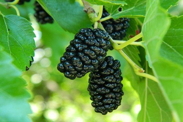 Средние вытянутые плоды, внешне немного похожие на ежевику. Но вкус у них свой — сладкий, освежающий с ягодным ароматом. Тёмно-фиолетовые или чёрные блестящие плоды сразу вызывают желание сорвать их и съесть. Сорт высокоурожайный. Деревья среднерослые, раскидистые с огромными красивыми глянцевыми листьями. Достаточно зимостойкий. В опылителе не нуждается.
