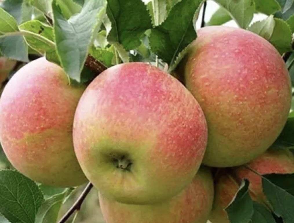 Данный сорт яблони относится к зимнему типу. Имеет небольшой рост – может достигать в высоту до 3 метров. Дерево имеет пышную зеленую крону, которая украсит ваш сад и привнесет ему оригинальности. На таком дереве созревают достаточно крупные плоды, вес которых достигает 200-250 грамм. Яблоки имеют округлую приплюснутую форму желтого цвета с элементами красных оттенков. Не менее привлекателен и вкус яблок. Мякоть плодов белого цвета, сочная, ароматная, неплотная. Вкус яблок приятный, кисло-сладкий.