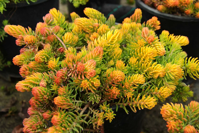 Очиток скальный Ангелина - низкое многолетнее растение с многочисленными ярко-золотисто-желтыми листьями, густо сидящими на ползучих побегах. В осенне-зимний период приобретает оранжево-желтый тон. Цветы желтые, собраны в соцветия высотой до 20 см, при диаметре около 40-50 см. Цветение с августа по сентябрь. Корни разрастаются горизонтально, и этот вид седума образует пушистые коврики на всем свободном пространстве.