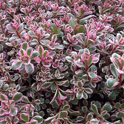 Очиток (седум) Триколор - это травянистое суккулентное низкорослое растение семейства Толстянковые. Высота до 15см. Обладает прекрасной тройной расцветкой. По краю листа проходит белая полоса, которая розовеет весной и осенью. Яркая окраска бывает только у растений, растущих на солнечном месте. Цветёт бледно-розовыми цветками которые собраны в конечные, густые, многоцветковые, зонтиковидные щитки до 5 см.