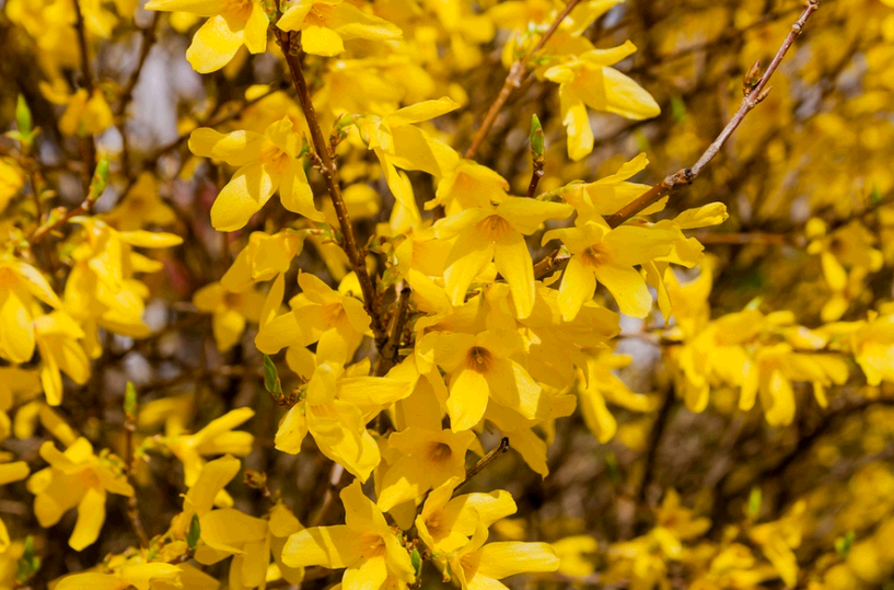 Великолепное солнечное цветение форзиций – один из первых признаков наступающей весны!Хотите ранней весны у себя на участке? Форзиция неизменно вызывает удивление: когда сады стоят еще мрачные и серые, ее голые ветви покрываются насыщенным золотым цветом. Кустарник, сначала пряморастущий, тонкий и стройный, позже более раскидистый, достигает 2-3 м в высоту. Листья ярко-зеленые.Цветет в апреле-мае. Цветки светло-желтые, расположены вдоль ветвей.Неприхотлива и морозостойка.