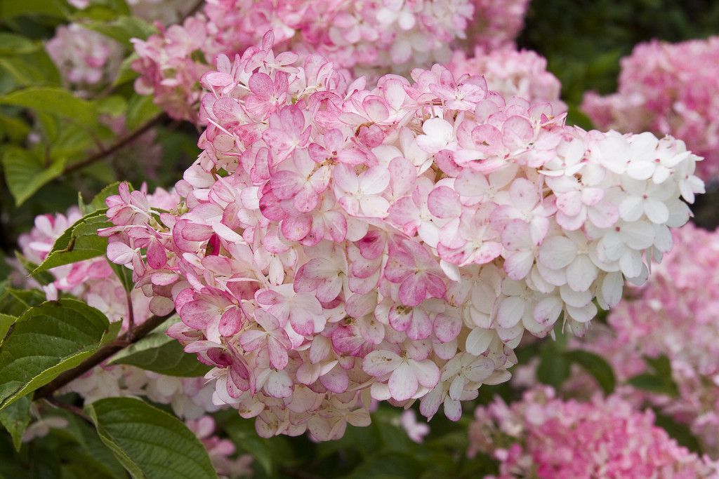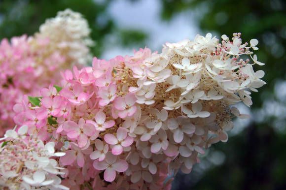 Цветки бесплодные, белые, по мере отцветания прибретают розово– красный цвет, собранные в широкопирамидальные соцветия; идут хорошо на сухие зимние букеты. Цветёт с июля по сентябрь. Отцветшие цветки тоже весьма декоративны.
