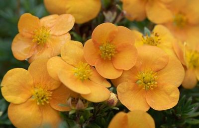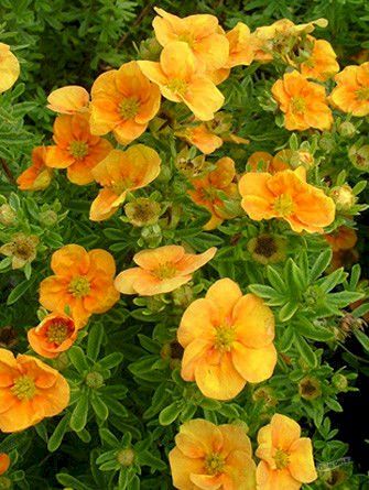 Очень декоративный невысокий лиственный кустарник, с густой кроной.Высота взрослого растения 60см.Листья небольшие, летом - зелёные, осенью - жёлтые.Цветки пятилепестковые, лепестки большей частью - оранжевые, ближе к центру - на них присутствует красный оттенок, серединка у цветков - жёлтая. Если летом или осенью стоит прохладная погода, то лепестки цветков имеют больше красного оттенка.Цветёт растение обильно с июня по сентябрь, одиночные цветки иногда появляются и в октябре.Монго-танго растение морозоустойчиво.