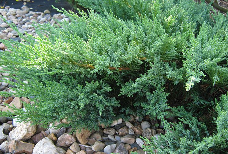 Можжевельник казацкий "Глаука".Декоративен раскидистой, стелющейся кроной и серо-голубой или голубовато-зеленой хвоей.Стелющийся кустарник высотой до 1,5 м, диаметром до 4 метров. Быстрорастущий кустарник. С годами захватывает большие территории. Хвоя — чешуйчатая, голубовато-стальная или сине-зеленая, к осени приобретает бронзовый оттенок. Хвоя и побеги при растирании издают резкий запах.Светолюбив. Выносит небольшое затенение.
