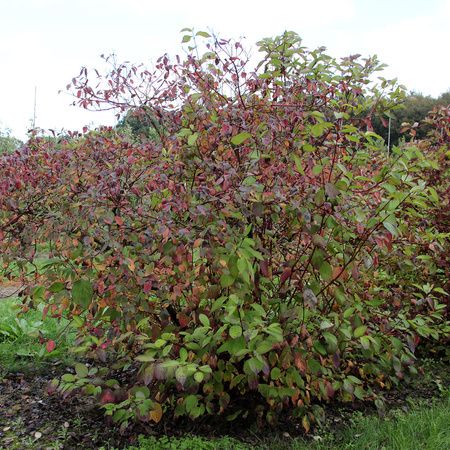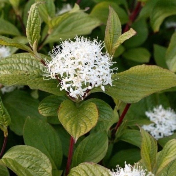 Листопадный раскидистый кустарник высотой и диаметром около 3 метров с кораллово-красными или бордовыми побегами, особенно яркими в зимний период. Листья темно-зеленые, цельные, продолговатые, супротивные, с шестью парами жилок. Осенью отличается фиолетовой или красноватой окраской листьев. Ярче окрашивается осенью после лета с достаточным количеством дождей, после засухи почти не окрашивается и рано теряет листья. Цветет в начале июня и до осени белыми цветками, собранными в щитковидные соцветия на концах веток. С конца июля цветки соседствуют с плодами. Плоды вначале белые, потом приобретают необычный голубоватый оттенок.