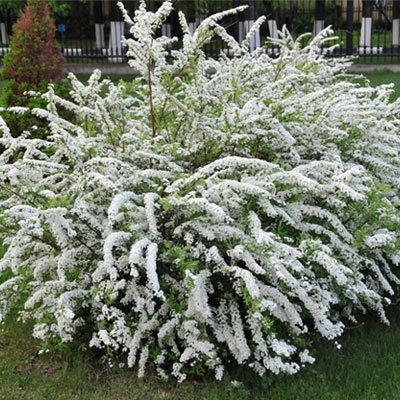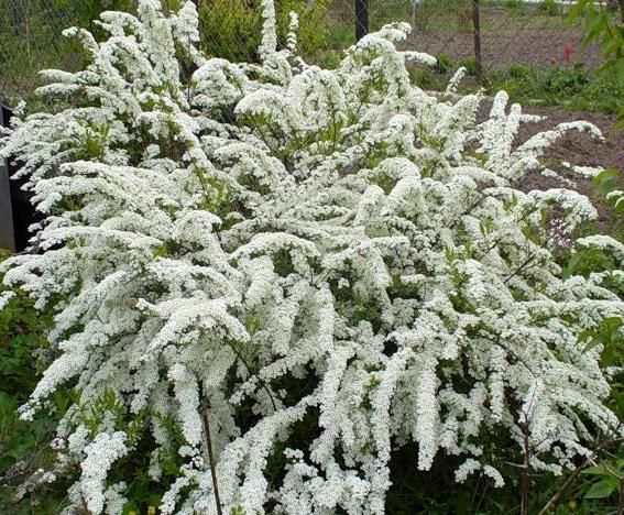 Кустарник высотой до 2,0 м. Белоснежные цветки (с запахом меда – запах ощущается только в вечернее время) собраны в многочисленные щитковидные соцветия, расположенные по всему побегу. Цветет очень обильно в середине мая в течение более двух недель.