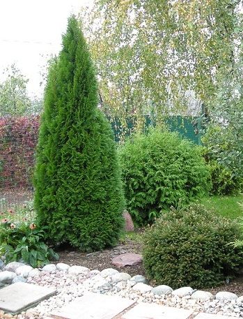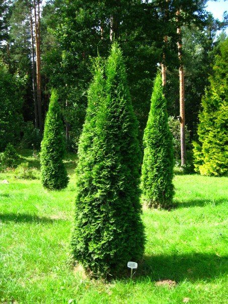 Туя западная "Смарагд"-красавица вечнозеленая ,декоративна стройной конусовидной формой кроны с ярко-зеленой хвоей.Дерево конусовидной, стройной формы высотой до 3-5 метров, диаметром кроны 1-2 метра. Растет довольно медленно.Умеренно теневынослива, но лучше развивается на освещенных местах.