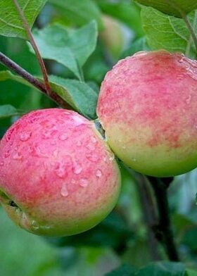 Яблоки сорта «Брызги шампанского» относятся к среднелетнему сроку созревания. Деревья умеренного роста, с раскидистой округлой кроной, неплохо адаптированы к морозу. Плоды средней массы (100-200г.), правильной округлой формы. Кожица зелено-красного цвета, гладкая, блестящая. Мякоть белая, сочная, с приятным сладко-кислым вкусом.